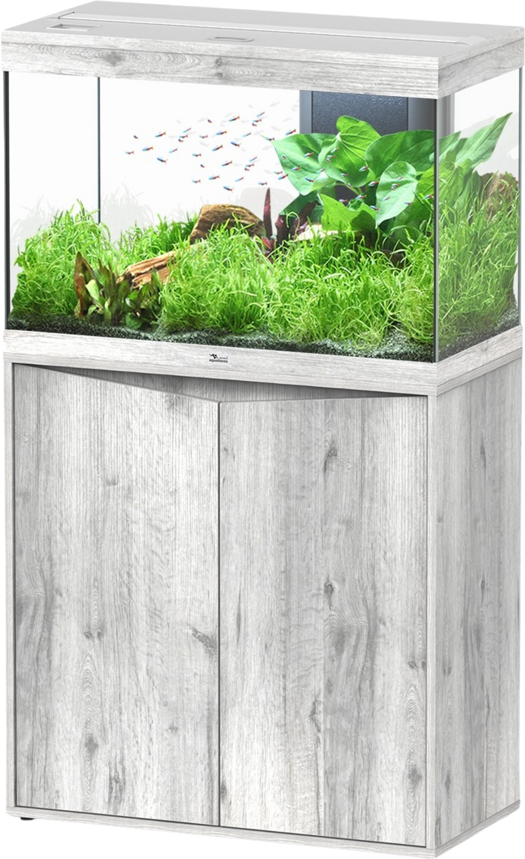 The Splendid Ultra 145 aquarium combination from Aquatlantis features a modern design with high-quality aluminium profiles and a base cabinet in the same colour. In addition to the aquarium and the stylish base cabinet, the set also includes a complete LED lighting system with RGBW technology, Biobox internal filter system with environment-friendly filter cartridges, heater, pump and ORI Smart Controller for easy control via smartphone. So you don't have to look for the individual components and order them separately.