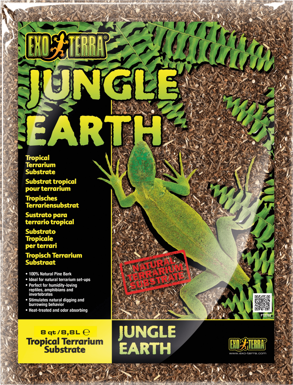 Heat-treated and odour-absorbing Exo Terra Jungle Earth is a terrarium substrate for reptiles, amphibians and invertebrates living in tropical habitats. The biodegradable substrate consists 100% natural bark from sustainably grown pine trees. Thanks to its hygroscopic nature, the finely chopped pine bark regulates the humidity in a terrarium by first absorbing moisture and then releasing it into the air. The texture of this substrate stimulates natural burrowing behaviour and allows reptiles to build firm nesting burrows to lay their eggs just as they would do in their natural habitat.