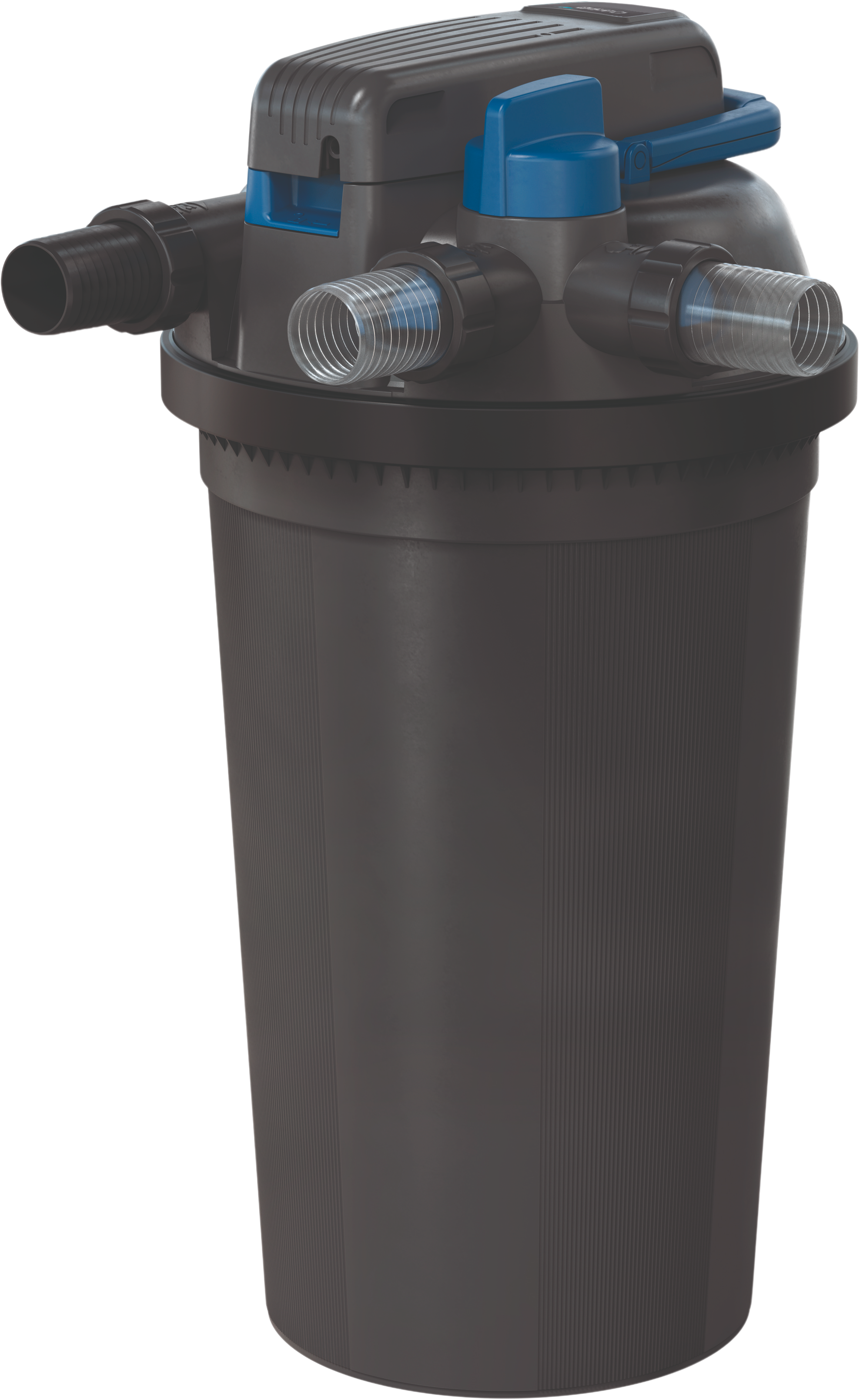 You can even change the UV-C bulb during active operation without having to switch off the system or laboriously dismantle the quartz glass. The robust, durable housing can also be buried up to the lid, allowing the technology to blend almost invisibly into your natural pond landscape. A sturdy metal tension ring with a simple lever function guarantees secure and effortless opening and closing of your filter at all times.