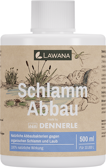 With LAWANA Schlamm Abbau, you can naturally optimise your pond maintenance using highly concentrated bacterial cultures to effectively break down organic deposits such as fallen leaves, sludge, and feed residues. This biological treatment converts problematic organic sediment into beneficial mineral components, helping to reduce the formation of unpleasant gases and significantly improving overall water quality.
